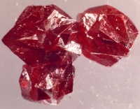 形态:三方晶系。为粒状或块状集合体,呈颗粒状或块片状。鲜红色或暗红色,条痕红色至褐红色,具光泽。有平行的完全解理。断口呈半贝壳状或参差状。硬度2~2.5。比重8.09~8.2。体重,质脆,片状者易破碎,粉末状者有闪烁的光泽,无味。金刚、半金属、暗淡光泽。