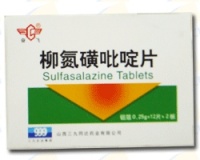 制剂柳氮磺吡啶片0.25g;0.5g;柳氮磺吡啶栓:每个g。口服,2-3g/日,分-4次服。逐渐增量至4-6g/日,病情好转后减为一日g,至症状消失.0.5g。6粒/盒