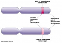 等位基因(gene)是同一基因的另外“版本”也就是在减数分裂间期复制染色体。例如,控制卷舌运动的基因不止一个“版本”,这就解释了为什么一些人能够卷舌,而一些人却不能。有缺陷的基因版本与某些疾病有关,如囊性纤维化。值得注意的是,每个染色体(chromosome)都有一对“复制本”,一个来自父亲,一个来自母亲。这样,我们的大约3万个基因中的每一个都有两个“复制本”。这两个复制本可能相同(相同等位基因allele),也可能不同。下图显示的是一对染色体,上面的基因用不同颜色表示。在细胞分裂过程中,染色体的外观就是如此。如果比较两个染色体(男性与女性)上的相同部位的基因带,你会看到一些基因带是相同的,说明这两个等位基因是相同的;但有些基因带却不同,说明这两个“版本”(即等位基因)不同。 这样就会产生变异或突变。