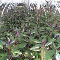 5、母株的保存 初霜前,在田间选择健壮的植株,截取顶芽,扦插在保护地内,留作母株来年使用。保护地内的温度应控制在5℃以上。