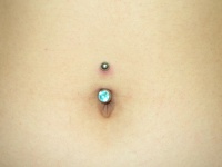 脐环是在肚脐上周围的表皮打洞穿孔(一般在上侧)所佩戴的饰品,用这种脐部饰品贯穿脐上方皮肤的两个脐洞(一进一出),并用脐环自有的螺丝固定而成。因脐部在人体的黄金分割点附近,所以一款合适的脐环能为爱美的女性填色不少。