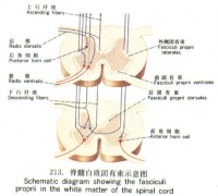 脊髓白质(white matter)在灰质的外周,可分前索、侧索、秋后索三个部分。其中有上行