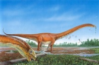 蜥脚亚目(Sauropoda,包括原蜥脚下目与蜥脚下目)生活在三叠纪晚期至白垩纪,其中原蜥脚类主要生活在三叠纪晚期到侏罗纪早期,是一类杂食或素食性的中等大小恐龙。蜥脚类主要生活在侏罗纪到白垩纪。大多数都是巨型的素食恐龙。头小,脖子长,尾巴长,牙齿成小匙状。蜥脚亚目的著名代表有产于中国四川、甘肃侏罗纪晚期的马门溪龙,由19节颈椎组成的脖子长度约等于体长的一半。