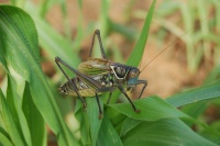 4、素色似织螽:体形中等,体大部分为草绿,头部背面黄褐,叫声“丝扎-丝扎”接近纺织娘,故有“小故娘”之美名。