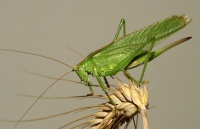 5、斑翅草螽:是一种常见种,体型小,体色为绿色和褐色两种。叫声:“丝-丝”中间有小停顿。