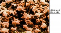 血小板(blood platelet)或称血栓细胞(thrombocyte), 正常数值为10万~30万/μ1。它是骨髓中巨核细胞胞质脱落下来的小块,故无细胞核,表面有完整的细胞膜。血小板体积甚小,直径2~4μm,呈双凸扁盘状;当受到机械或化学刺激时,则伸出突起,呈不规则形。在血涂片中,血小板常呈多角形,聚集成群。血小板中央部分有着蓝紫色的颗粒,称颗粒区(granulom