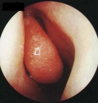 为鼻腔粘膜和粘膜下层的慢性炎症。很常见,轻者称为单纯性慢性鼻炎,重者称为肥厚性鼻炎。主要症状为鼻堵塞,轻者为间歇性或交替性,重者为持续性,鼻分泌物增多。检查见鼻粘膜充血肿胀,鼻道有少量粘液性分泌物,严重的肥厚性鼻炎由于组织增生,粘膜表面凹凸不平,下鼻甲呈桑葚状变化,中鼻甲粘膜呈息肉样变。鼻内滴入血管收缩剂,如 1%麻黄素等能改善鼻腔的通气和引流,使炎症消退。较重者可在下鼻甲粘膜下注射硬化剂,也可作电灼或冷冻疗法以改善通气,严重者需将增生部分的鼻甲作手术切除。中药及针刺治疗对轻症患者有一定效果。