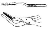 (二)鼻内复位法 适用于向内塌陷移位的鼻骨骨折。在局麻下用套有橡皮管或裹有油纱布的骨膜分离器,插入鼻腔内,使其前端伸到骨折处,将内陷的骨折片向前外方推动,同时用另一只手的拇指和食指在鼻外侧辅助复位。复位后用碘仿纱条填塞于鼻内骨折部,以防止骨折片再移位,同时有助于止血。5~6天后即可抽除鼻内填塞物。