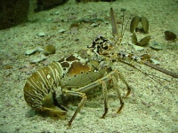 龙虾(学名:Palinuridae)是节肢动物门甲壳纲十足目龙虾科4个属19种龙虾的通称。又名大虾、龙头虾、虾魁、海虾等。它头胸部较粗大,外壳坚硬,色彩斑斓,腹部短小,体长一般在20厘米~40厘米间,重0.5公斤上下,是虾类中最大的一类。最重的能达到5公斤以上,人称龙虾虎。体呈粗圆筒状,背腹稍平扁,头胸甲发达,坚厚多棘,前缘中央有一对强大的眼上棘,具封闭的鳃室。主要分布于热带海域,是名贵海产品。中国已发现8种,以中国龙虾产量较大。