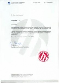 1988年8月,全公司通过瑞典卫生部的GMP检查