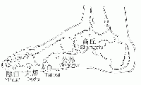 【穴位解剖】穴下为皮肤、皮下组织、屈肌支持带。皮肤由股神经的皮支,隐神经分布。皮下筋膜较疏松,除皮神经外,还有足静脉网及大隐静脉属支的起始部。足背筋膜深面有内踝(动脉)网。该网位于内踝的表面,由内踝前后动脉、跗内侧动脉、跟内侧支及足底内侧动脉的分支组成。针由皮肤、皮下筋膜穿足背筋膜后,在胫骨前肌(腱)的内后方,小腿十字韧带的内侧上、下支之间深进到距骨内侧面骨膜。