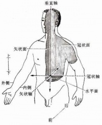 coronal plane:为左,右方向将人体纵切为前后两部分的断面. 通过铅垂轴与横轴的平面及与其平行的所有平面都称为冠...”为内容创建页面)