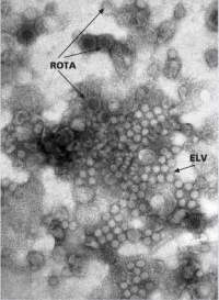 轮状病毒是引起婴幼儿腹泻的主要病原体之一,其主要感染小肠上皮细胞,从而造成细胞损伤,引起腹泻。轮状病毒每年在夏秋冬季流行,感染途径为粪-口途径,临床表现为急性胃肠炎,呈渗透性腹泻病,病程一般为7天,发热持续3天,呕吐2~3天,腹泻5天,严重出现脱水症状