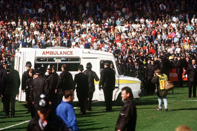 下图是虽然不是损失最大,但是最有影响力的踩踏事件之一——1989年4月15日的英国希尔斯堡球场惨案,96人被活活挤死。