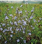 菊科(Asteraceae)多年生植物,学名为Cichorium intybus。菊苣有一长形肉质主根;茎挺硬,多分枝,多毛,高达1∼1.5公尺(3∼5呎)。叶基生,分裂而具齿,形似蒲公英叶。菊苣亦可栽培为粗饲料或牧草。夏季,将其根栽於户外,秋天收取,或不论季节在室内栽培,以便在冬季催成。有一种催成都方法可生成「长胡子」菊苣(barbe de capucin),另一种方法生成紧密的叶球,称为白色菊苣(witloef或witloof)。在整个欧洲,人们贮藏其根,以便冬季萌生叶子供做沙拉。在温暖地区,生长季节达5.5∼6个月,如果春天播种太早,植株就会结籽而不能形成硕大的贮藏根。因此在这些地区应在6月份播种,根就可在地窖里、温室种植台下或户外催成。全阳4oC以下需保护,喜排水良好的土壤,花期(4~8月),花在中午闭合,可用于混合花坛,可与开蓝色花的植物如玻璃菊等相配。